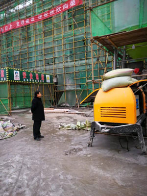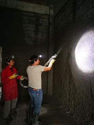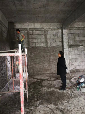 第二天上午,冯总来到公司,根据机喷流程,设计了机喷砂浆,经过小试,一切指标合格。公司马上安排车间生产机喷砂浆,到工地试机。砂浆经过搅拌进入大泵,开机,砂浆流量正常,没有反弹、下垂现象,施工队对这种砂浆性能非常满意。在搅拌器中把机喷砂浆和珍珠岩按照一定比例混合,喷涂效果非常好,施工队非常认可,机喷砂浆在宜昌研发成功。